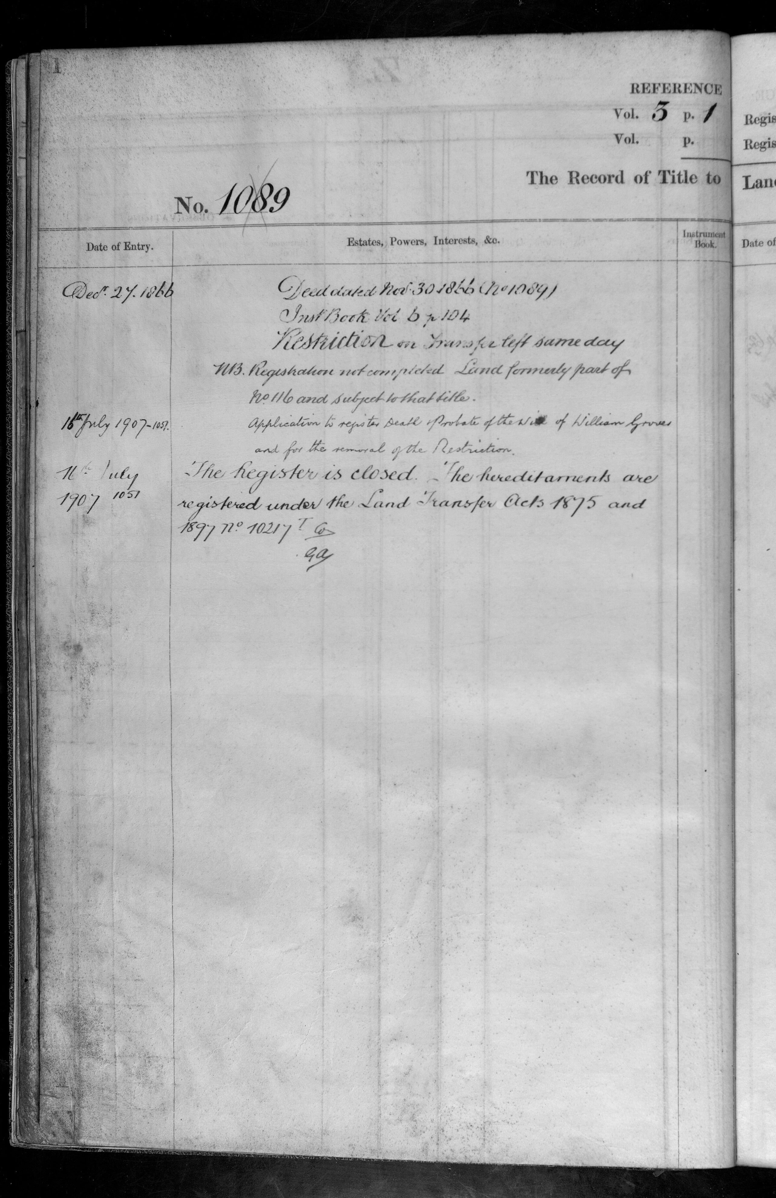 Register of Title - Volume 3