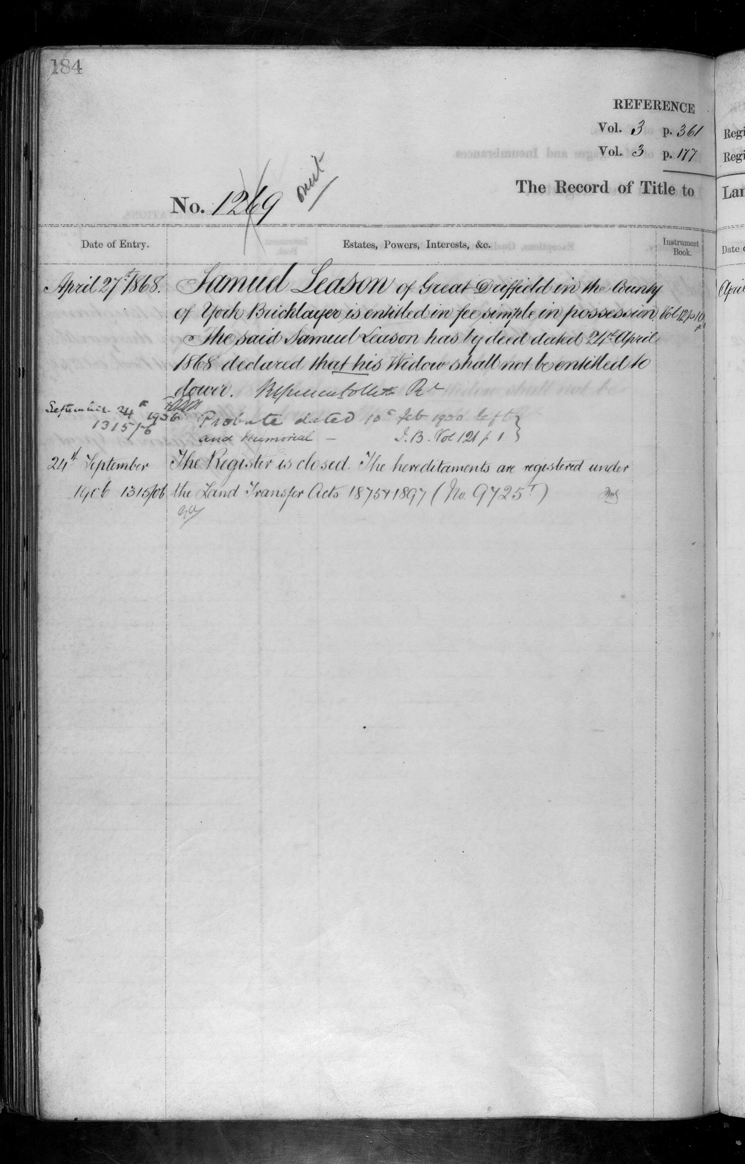 Register of Title - Volume 3