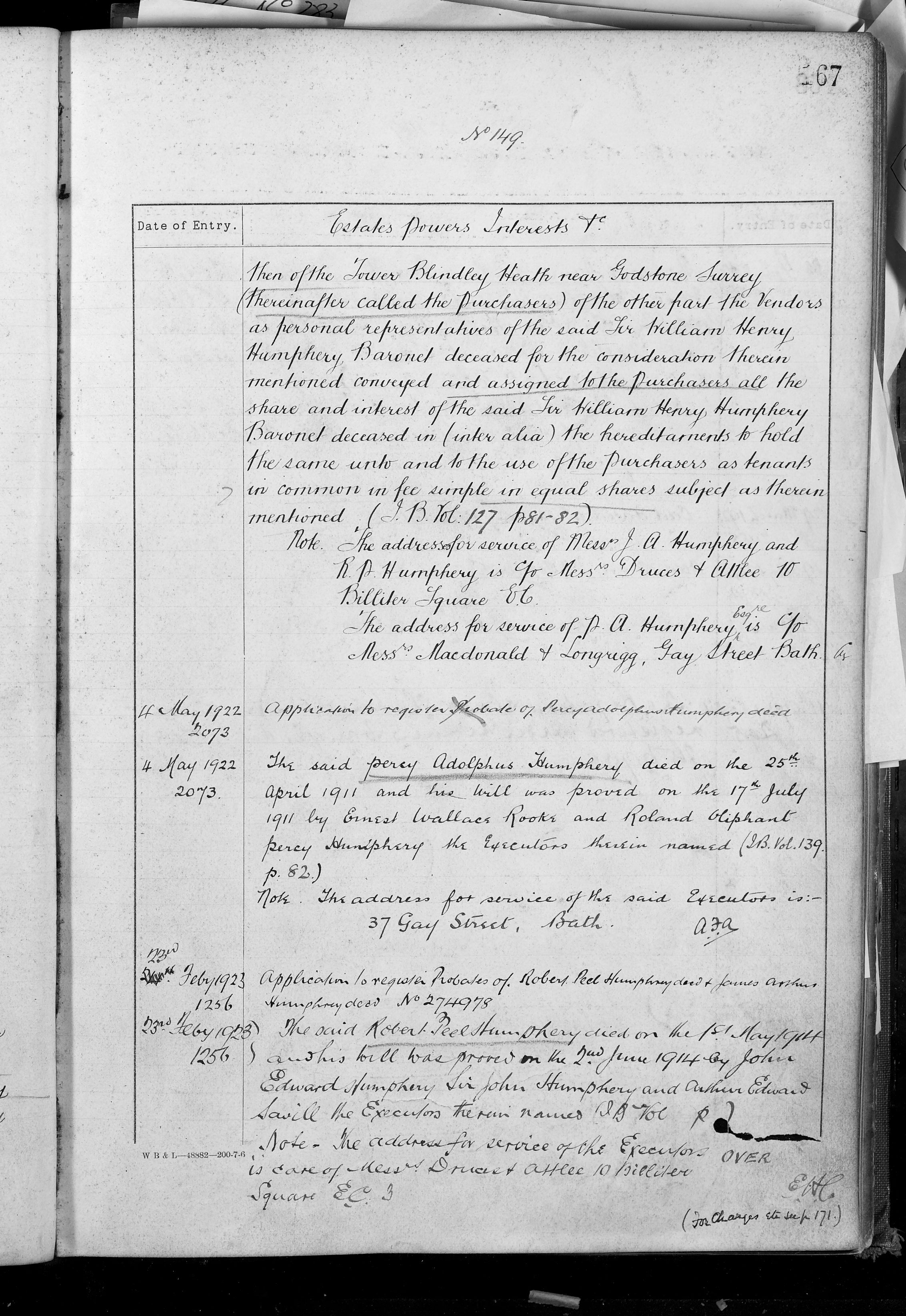 - Sir William Henry Humphery, James Arthur Humphery, Percy Adolphus Humphery, Edward John Humphery, Robert Peel Humphery