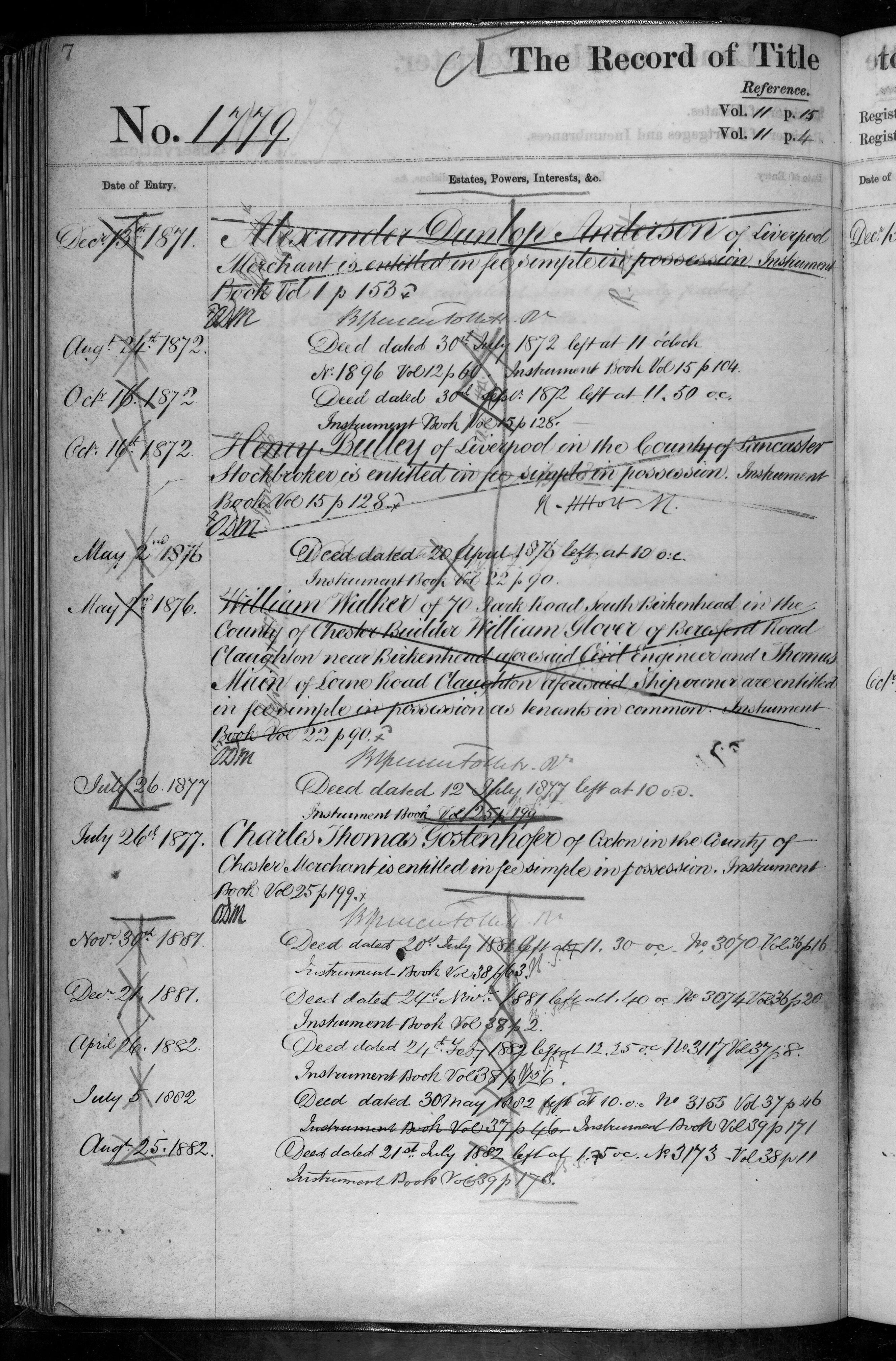 - Alexander Dunlop Anderson, Henry Bulley, William Walker, William Glover, Charles Thomas Gostenhofer