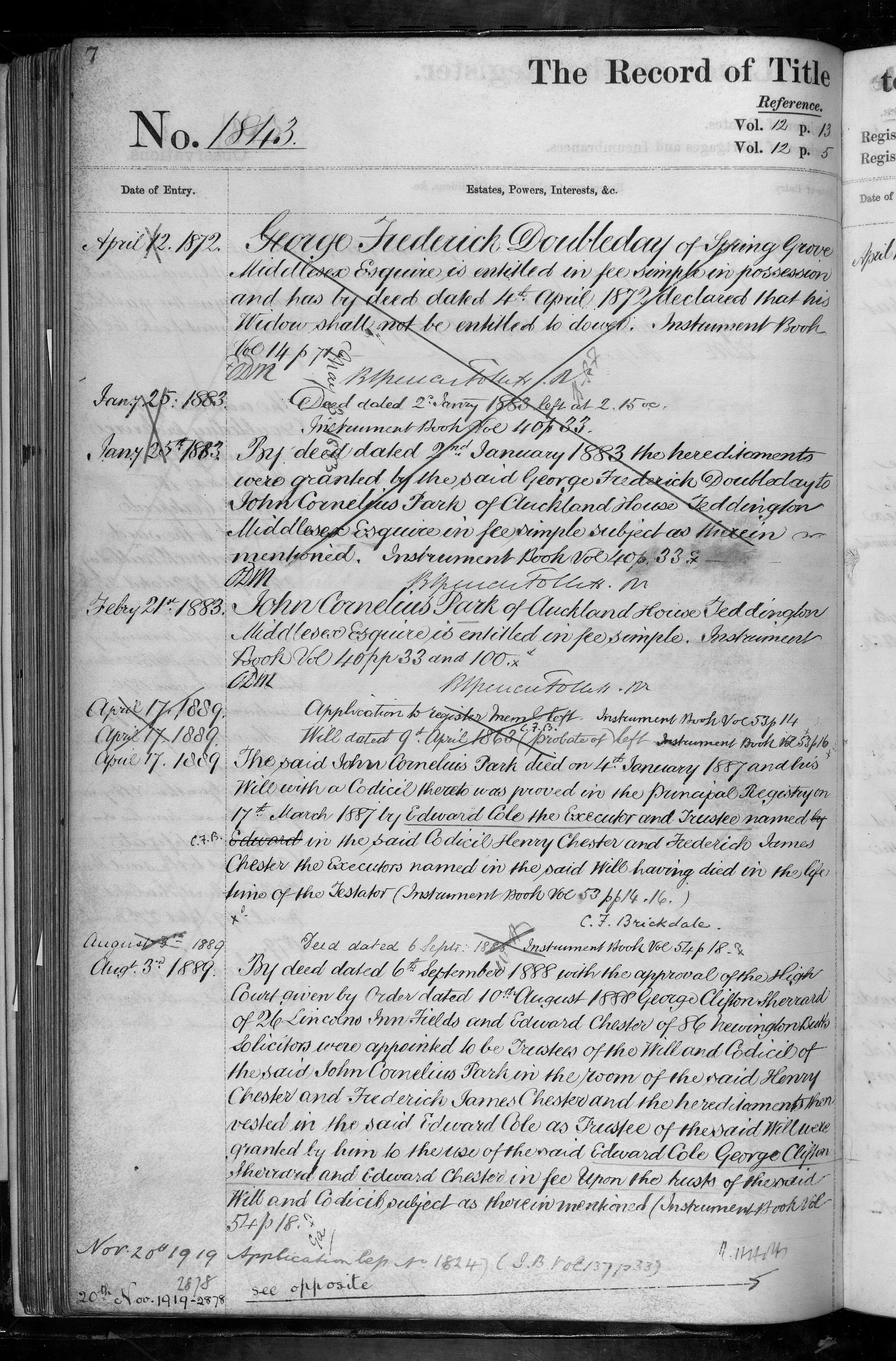 - George Frederick Doubleday, John Cornelius Park