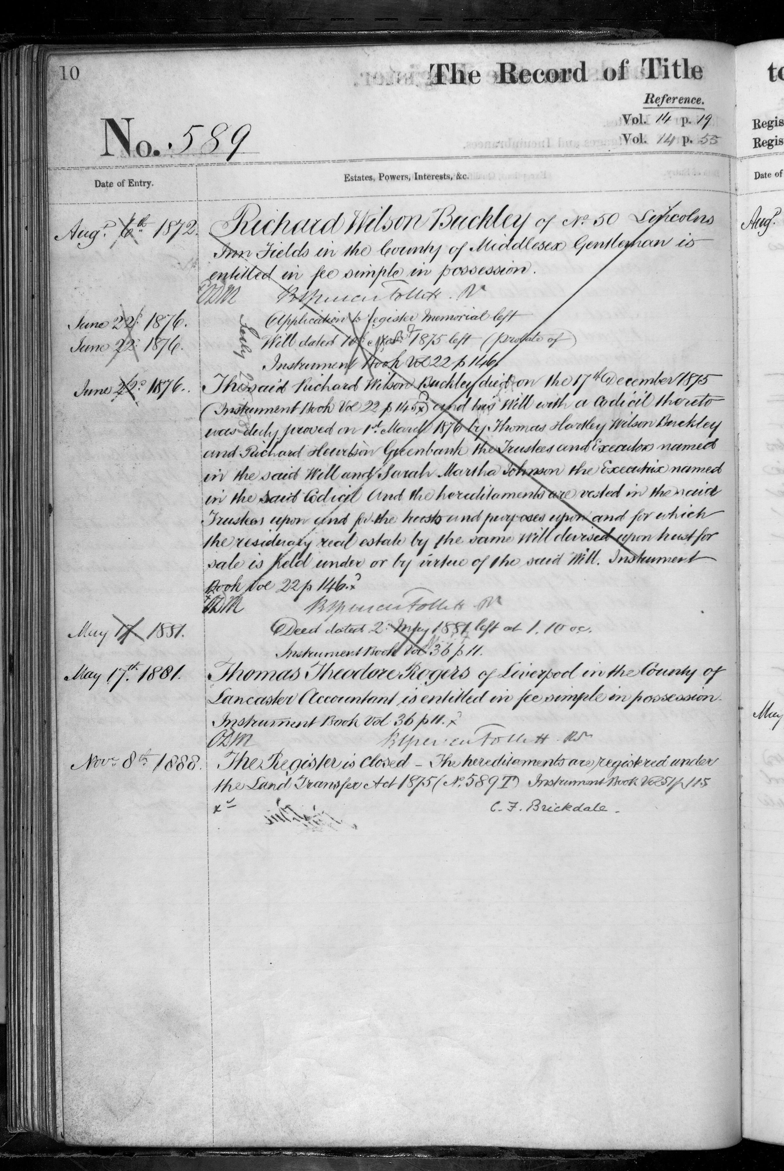 - Richard Wilson Buckley, Thomas Theodore Rogers