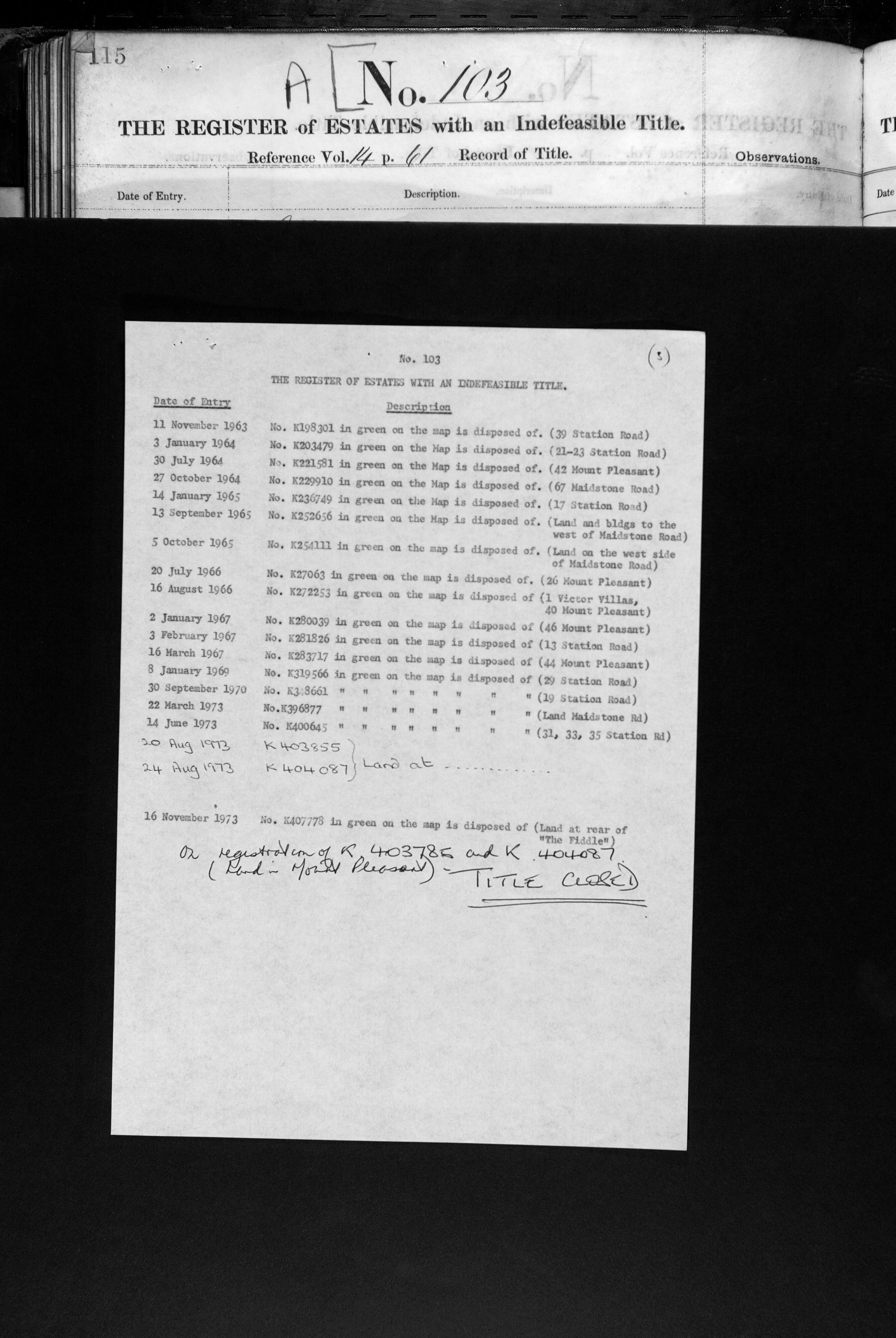 - Title numbers: