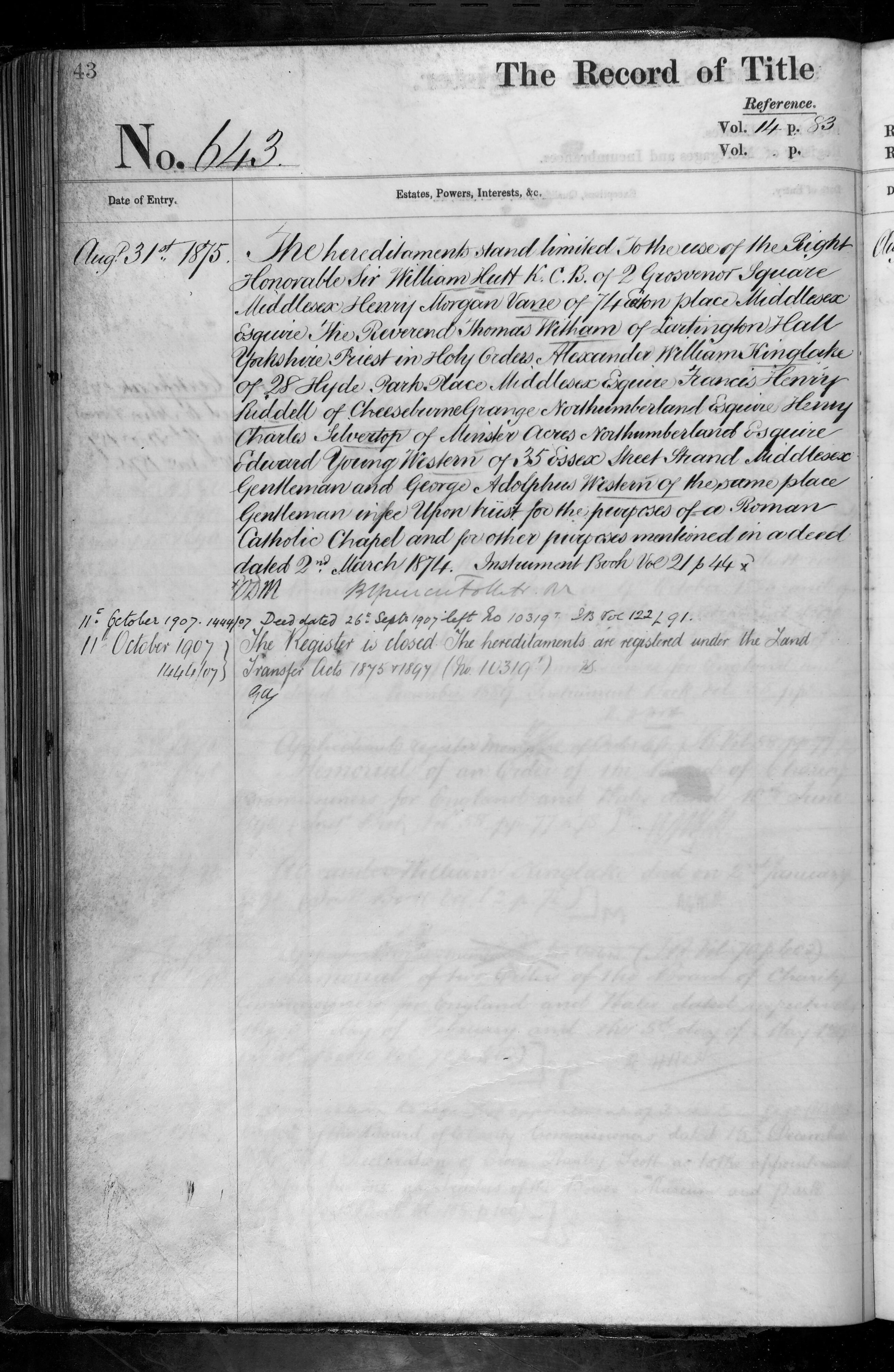 - The Right Honorable Sir William Hutt, Henry Morgan Vane, The Reverend Thomas Witham, Alexander William Kinglake, Francis Henry Riddell, Henry Charles Silvertop, Edward Young Western, George Adolphus Western