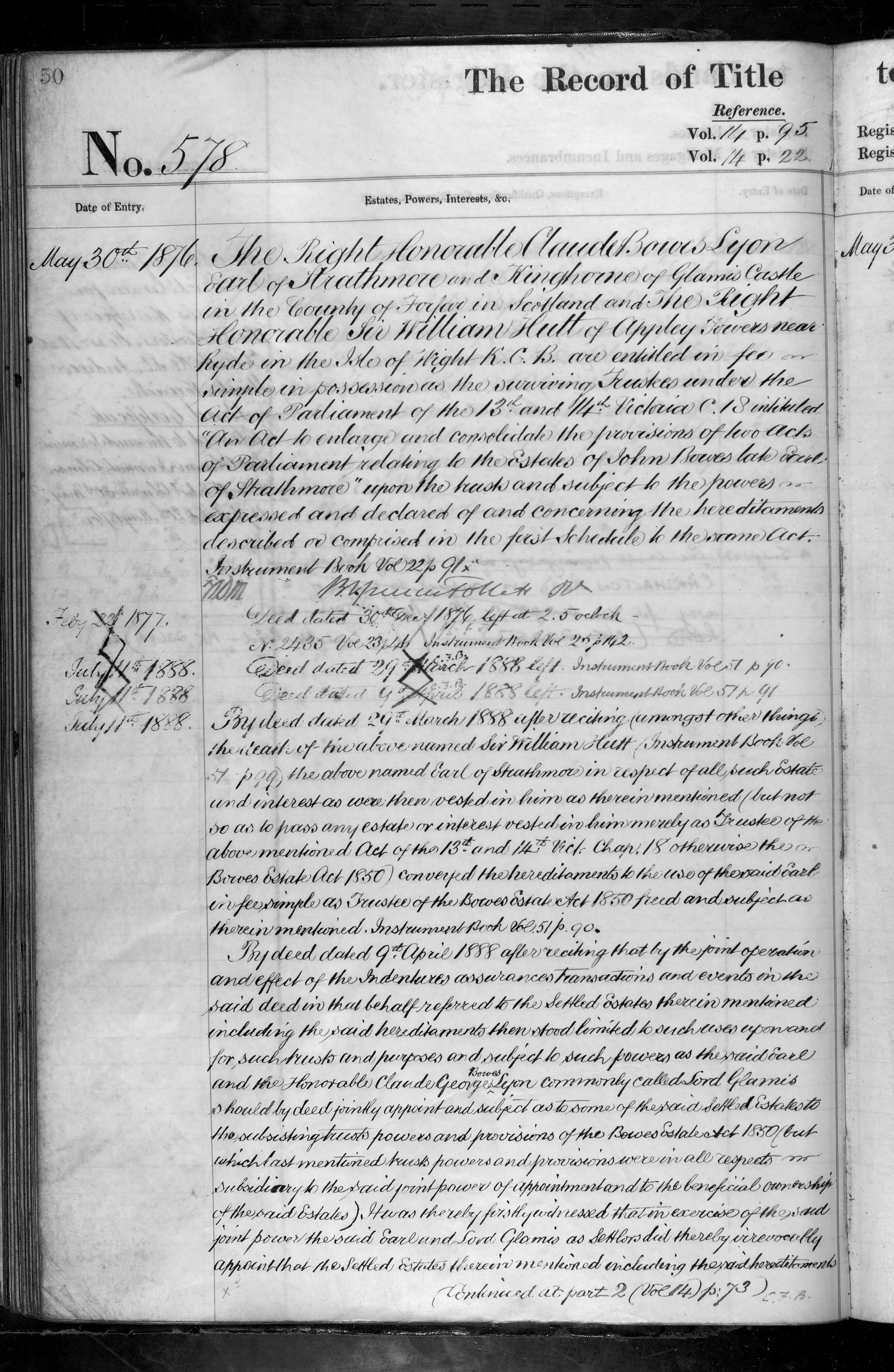 - The Right Honorable Claude Bowes Lyon, The Right Honorable Sir William Hutt