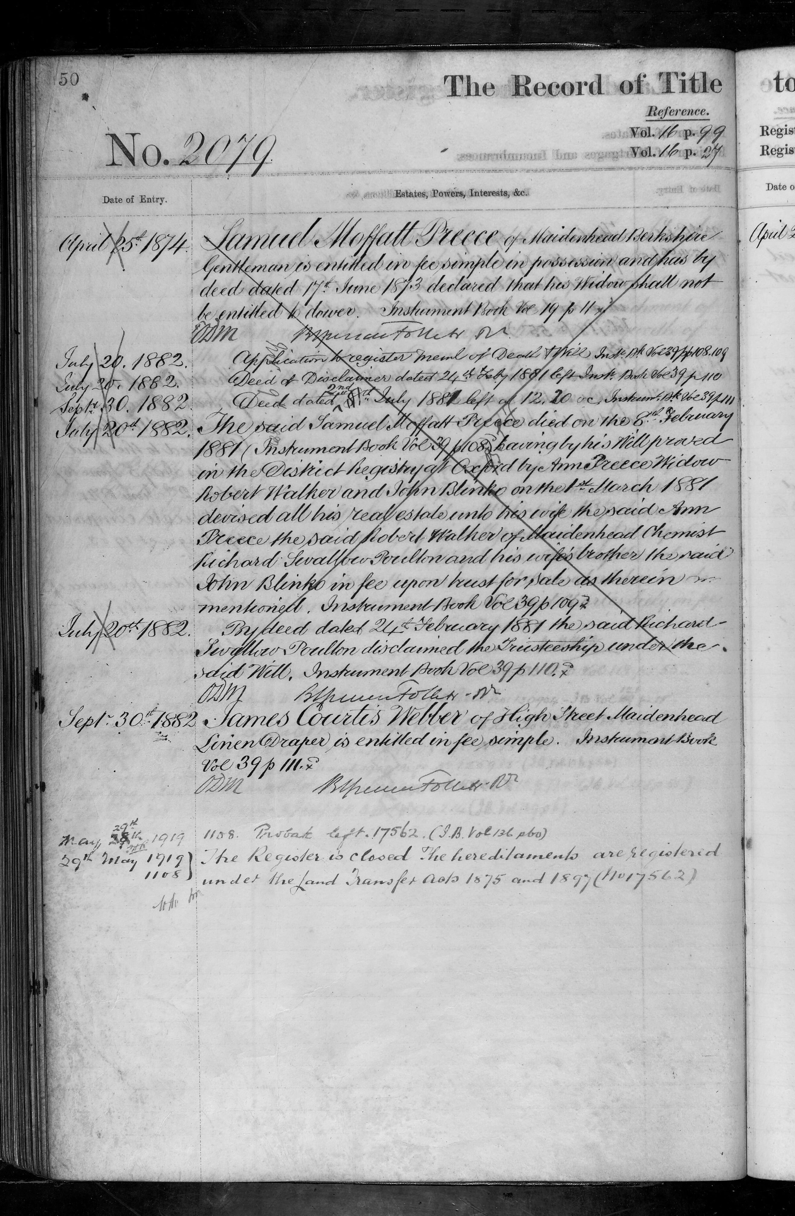 - Samuel Moffatt Preece, James Courtis Webber