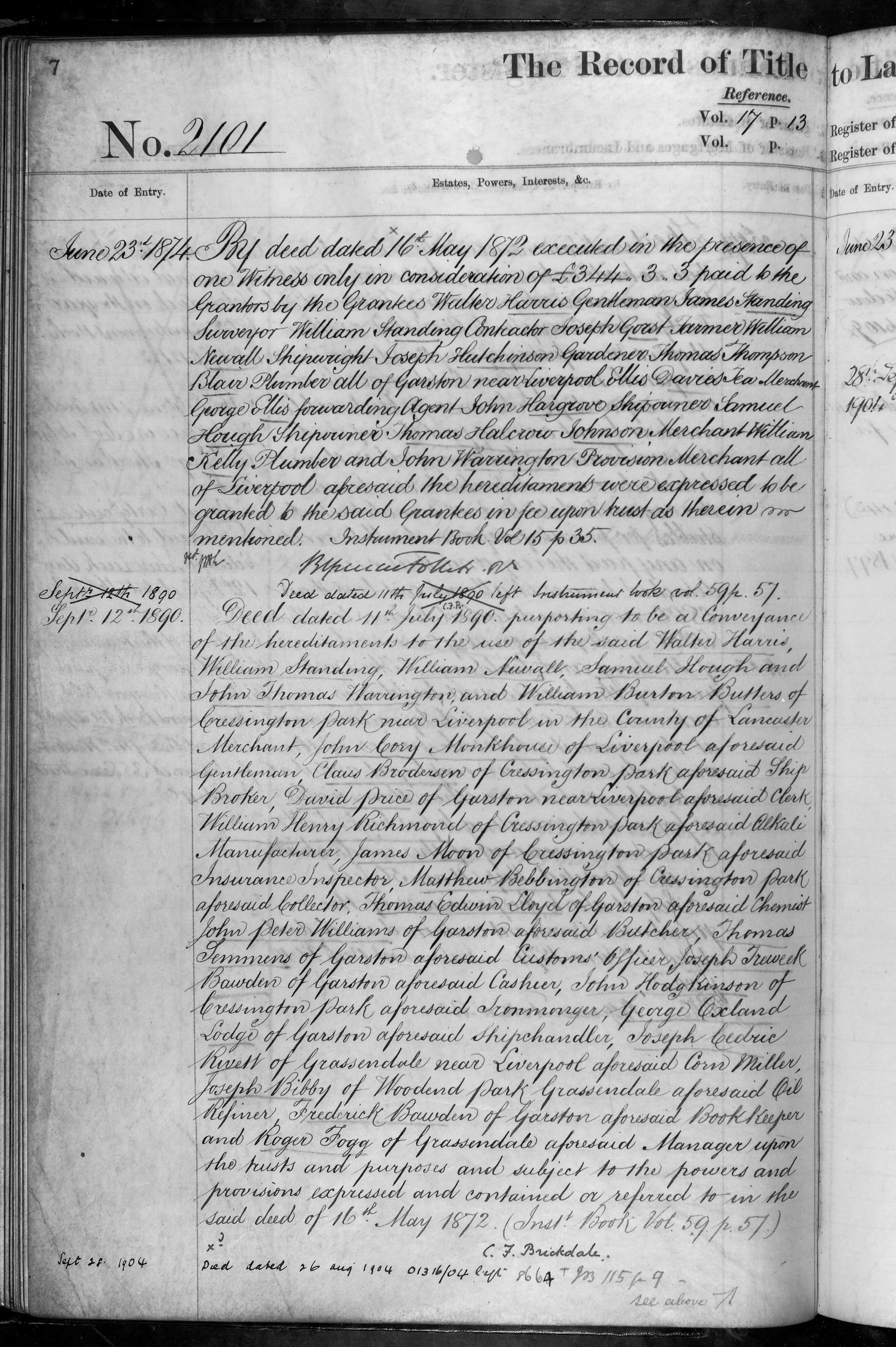 - Walter Harris, James Standing, William Standing, Joseph Gorst, William Newall, Joseph Hutchinson, Thomas Thompson Blair, Ellis Davies, George Ellis, John Hargrove, Samuel Hough, Thomas Halcrow Johnson, William Kelly, John Warrington Walter Harris, John Thomas Warrington, William Burton, John Cory Monkhouse, Claus Brodersen, David Price, William Henry Richmond, James Moon, Matthew Bebbington, Thomas Edwin Lloyd, John Peter Williams, Thomas Semmens, Joseph Treweek Bawden, John Hodgkinson, George Oxland Lodge, Joseph Cedric Rivett, Joseph Bibby, Frederick Bawden, Roger Fogg