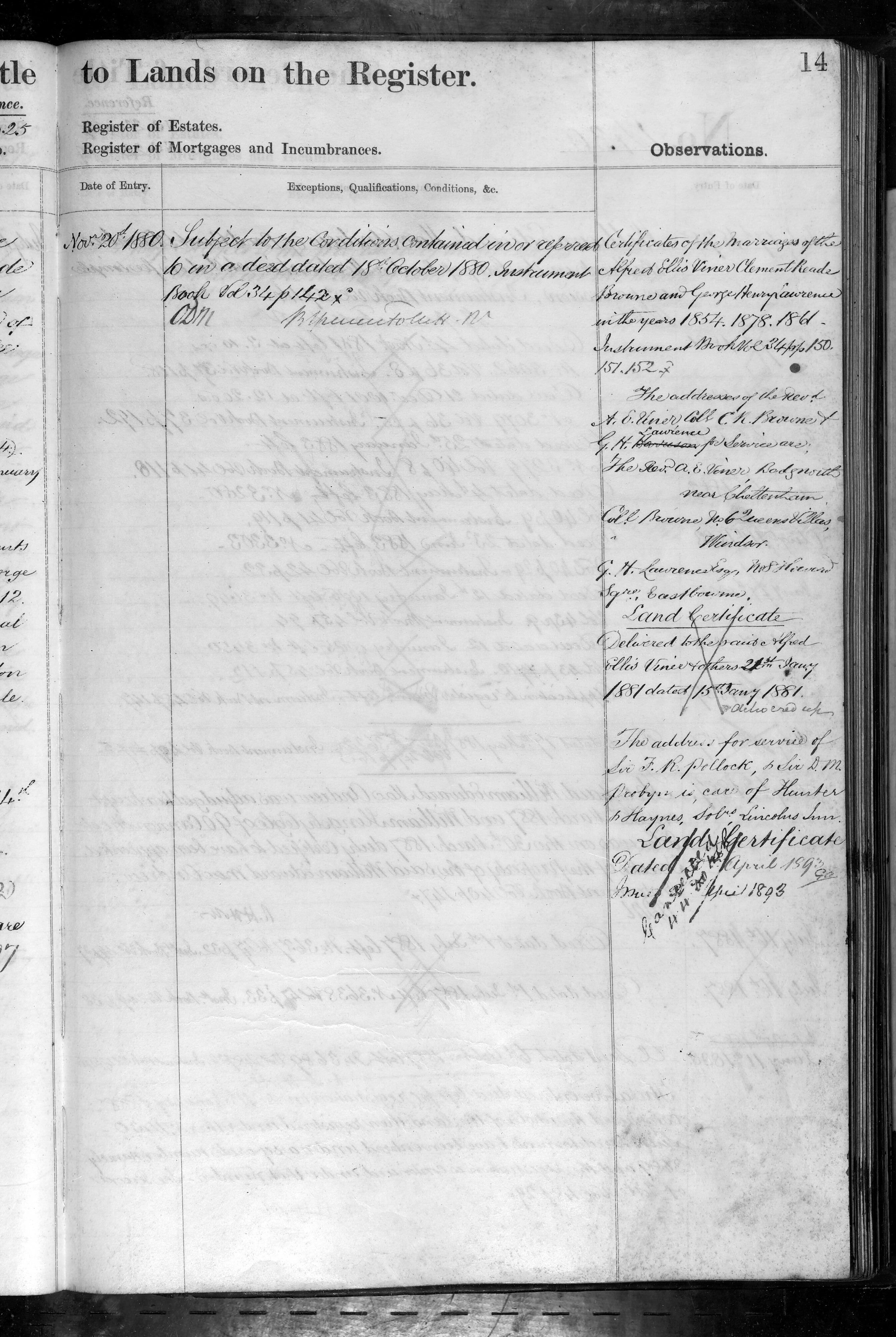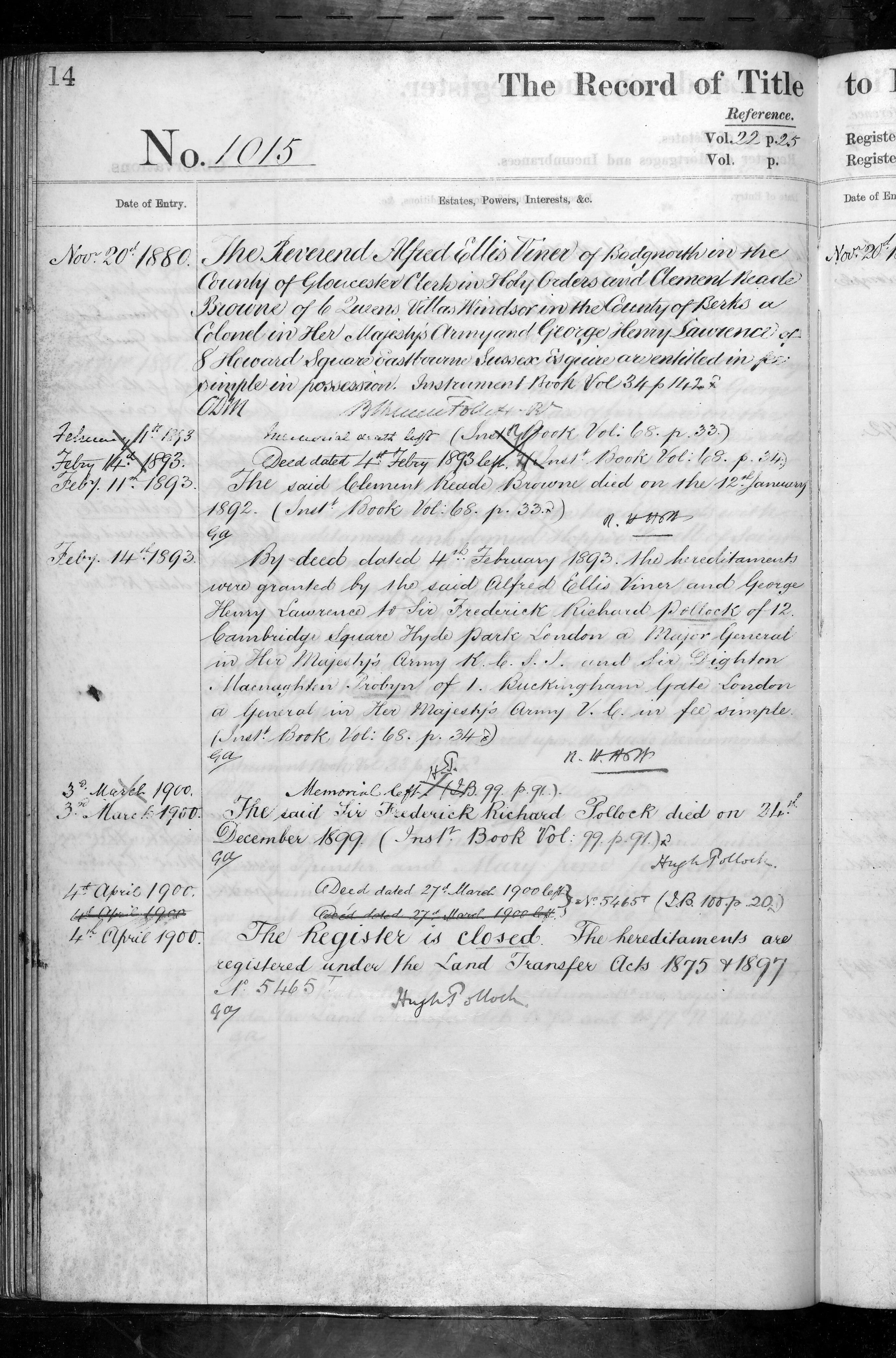 - The Reverend Alfred Ellis Viner, Clement Beade Browne, George Henry Lawrence, Sir Frederick Richard Pollock, Sir Dighton Macnaghton? Probyn