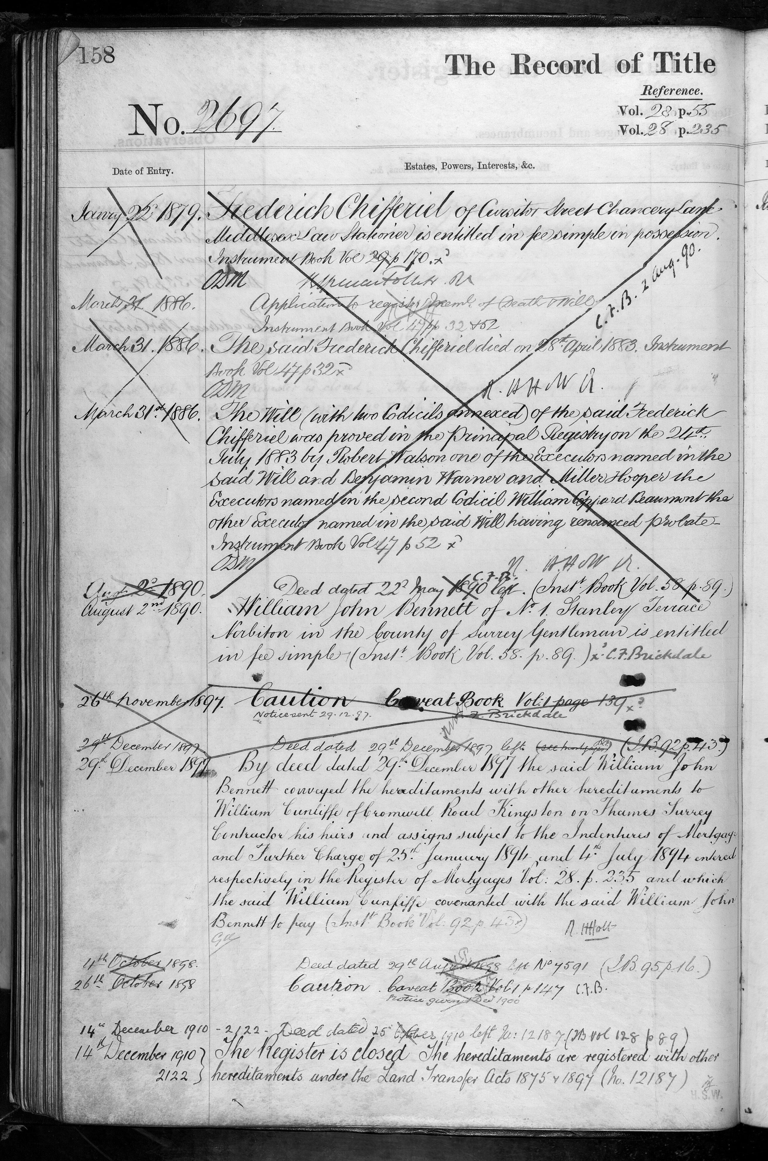 - Frederick Chifferiel, William John Bennett