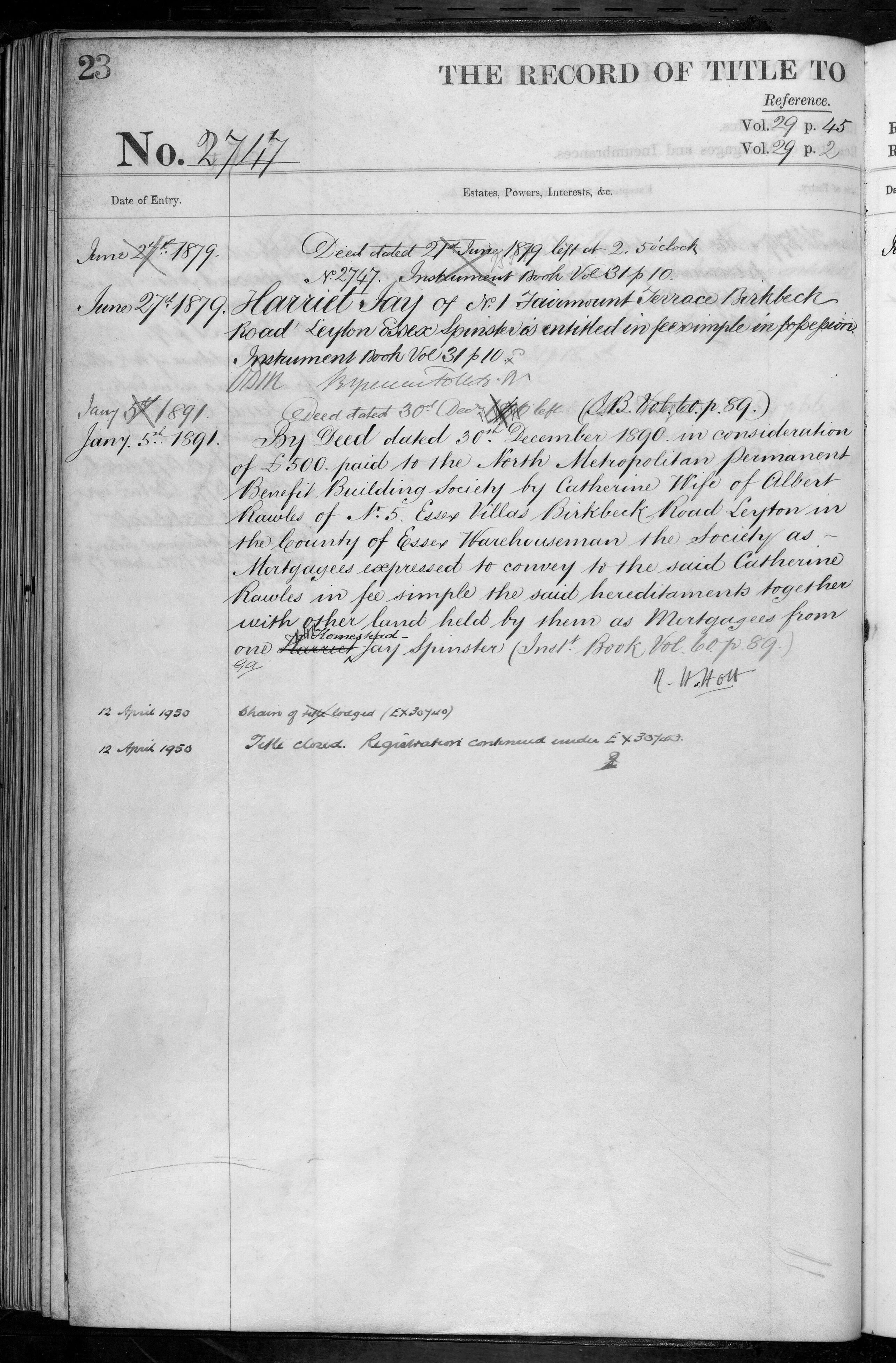 - Harriet Jay, North Metropolitan Permanent Benefit Building Society, Catherine Rawles