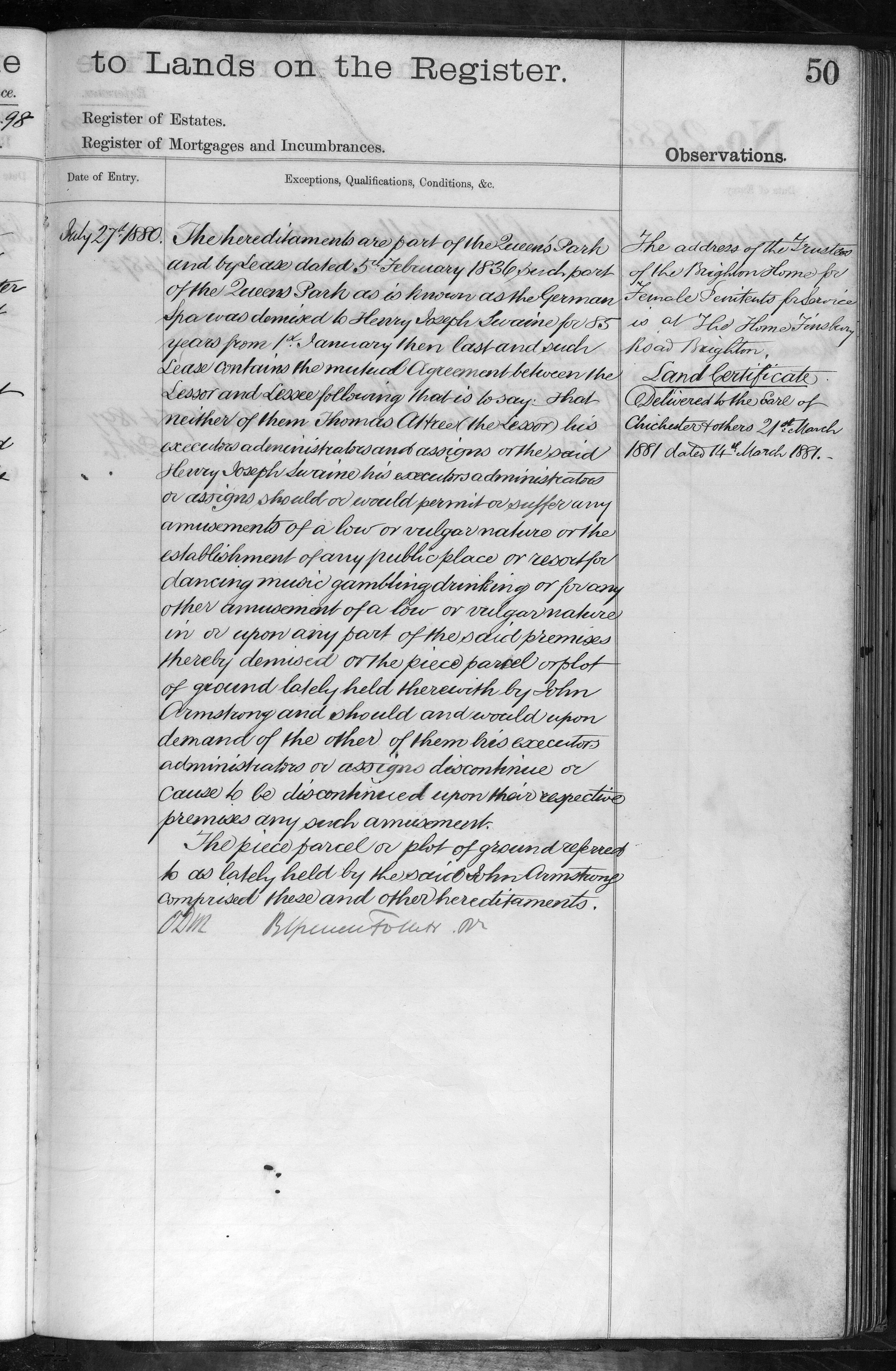 - The Right Honorable Henry Thomas, The Reverend James Vaughan, Robert Cooper Lee Bevan, Richard Alexander Bevan, The Reverend Alfred Henry Lococh