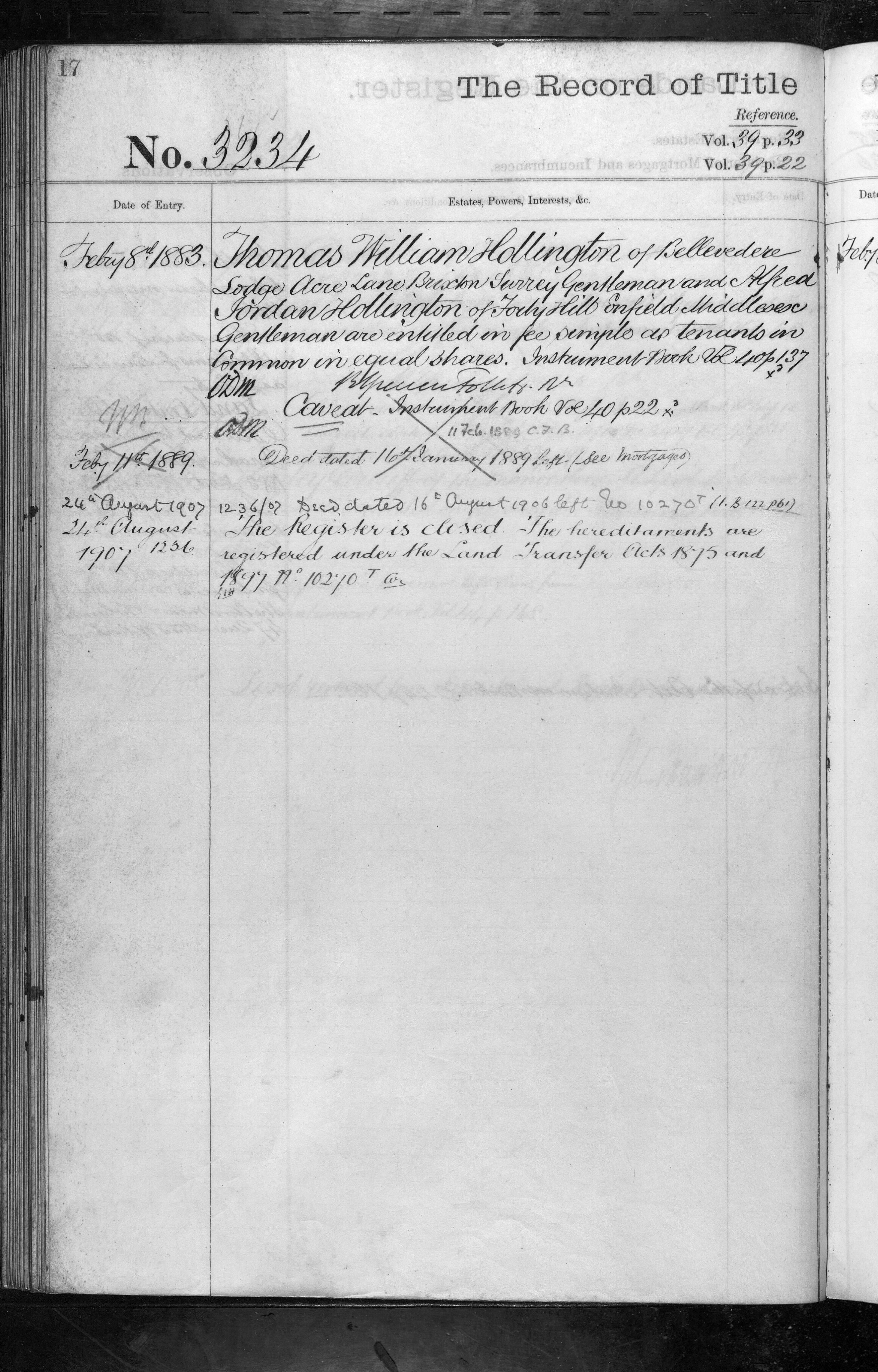- Thomas William Hollington, Alfred Jordan Hollington