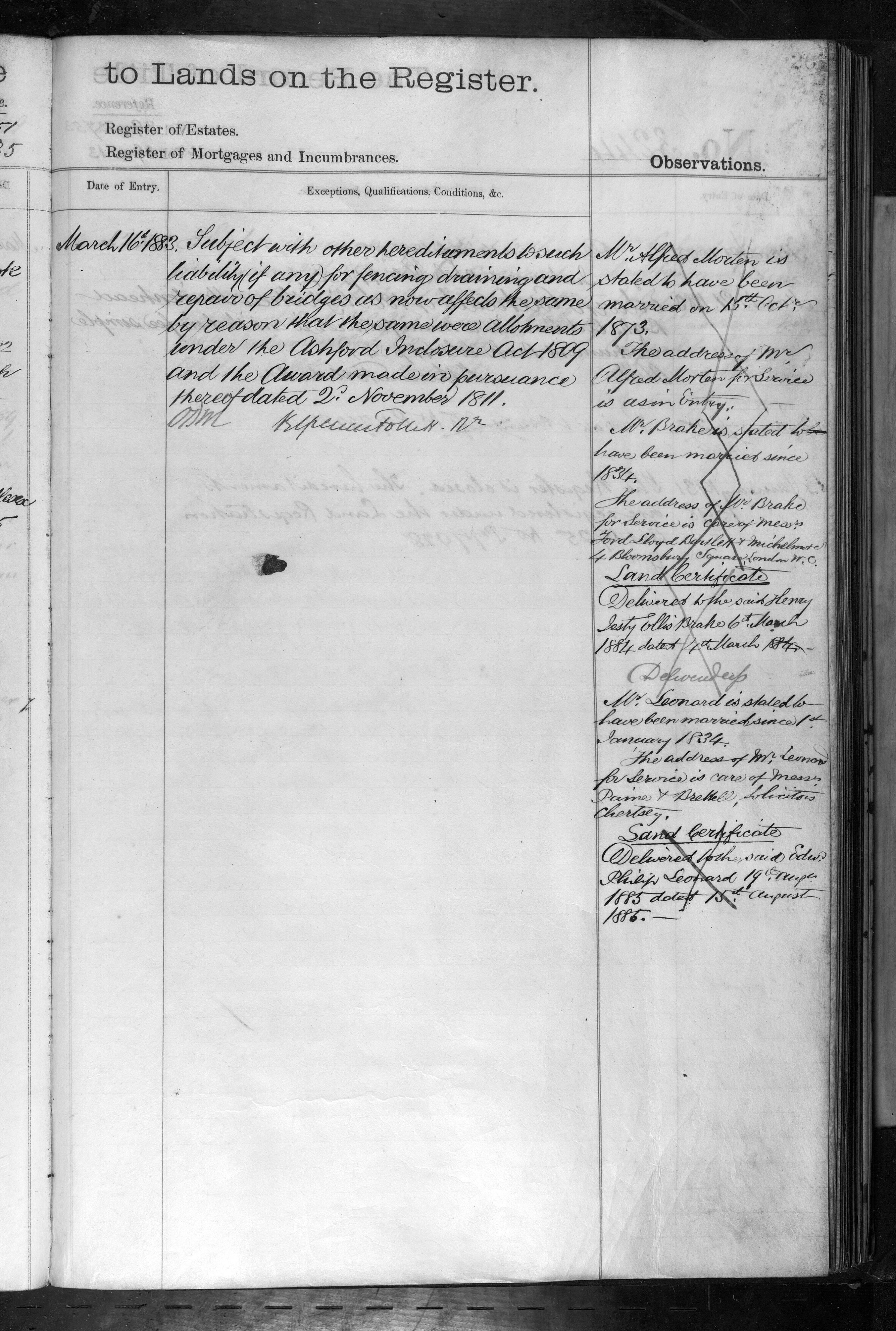 - Alfred Morton, Henry Jesty Ellis Brake, Edward Philip Leonard