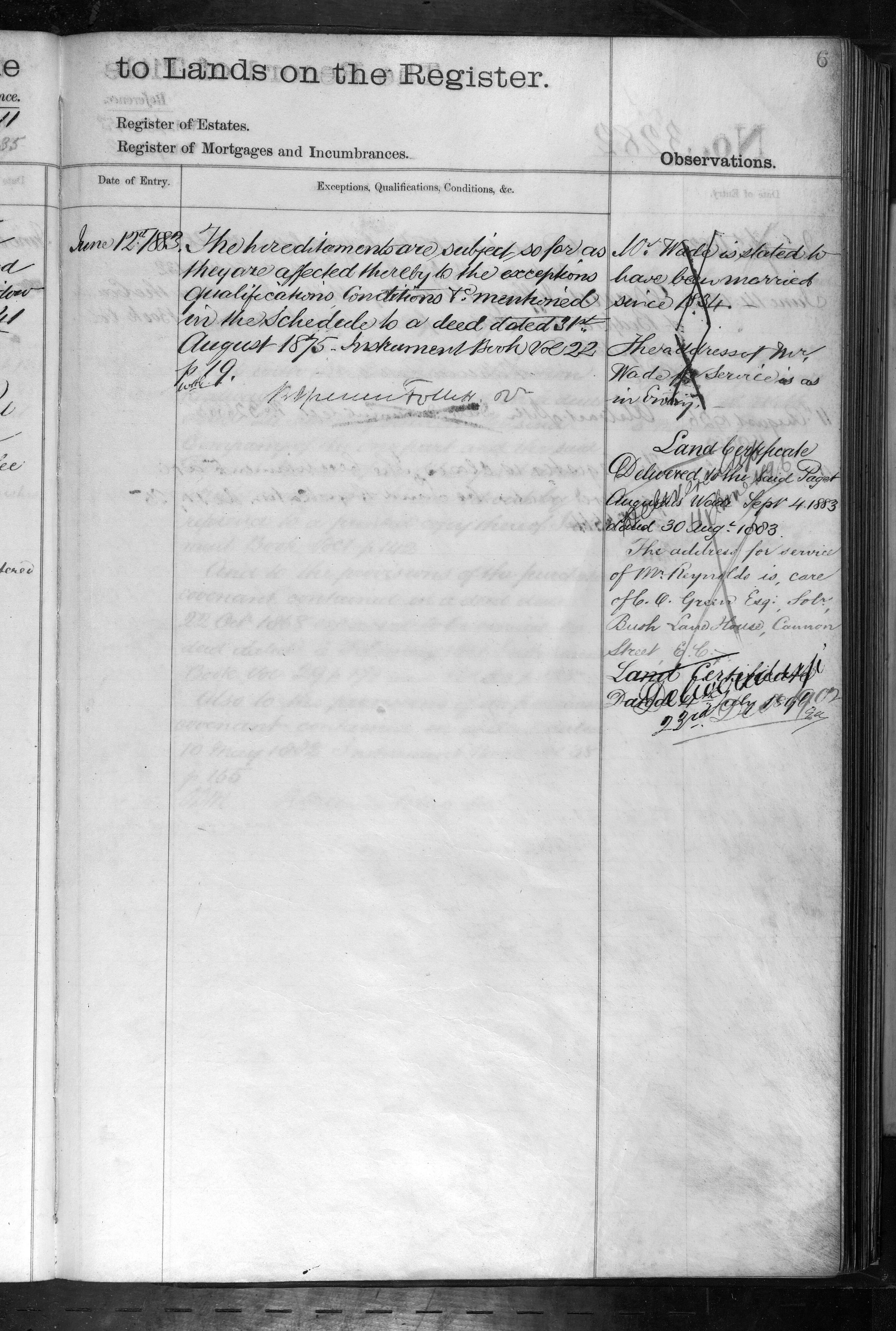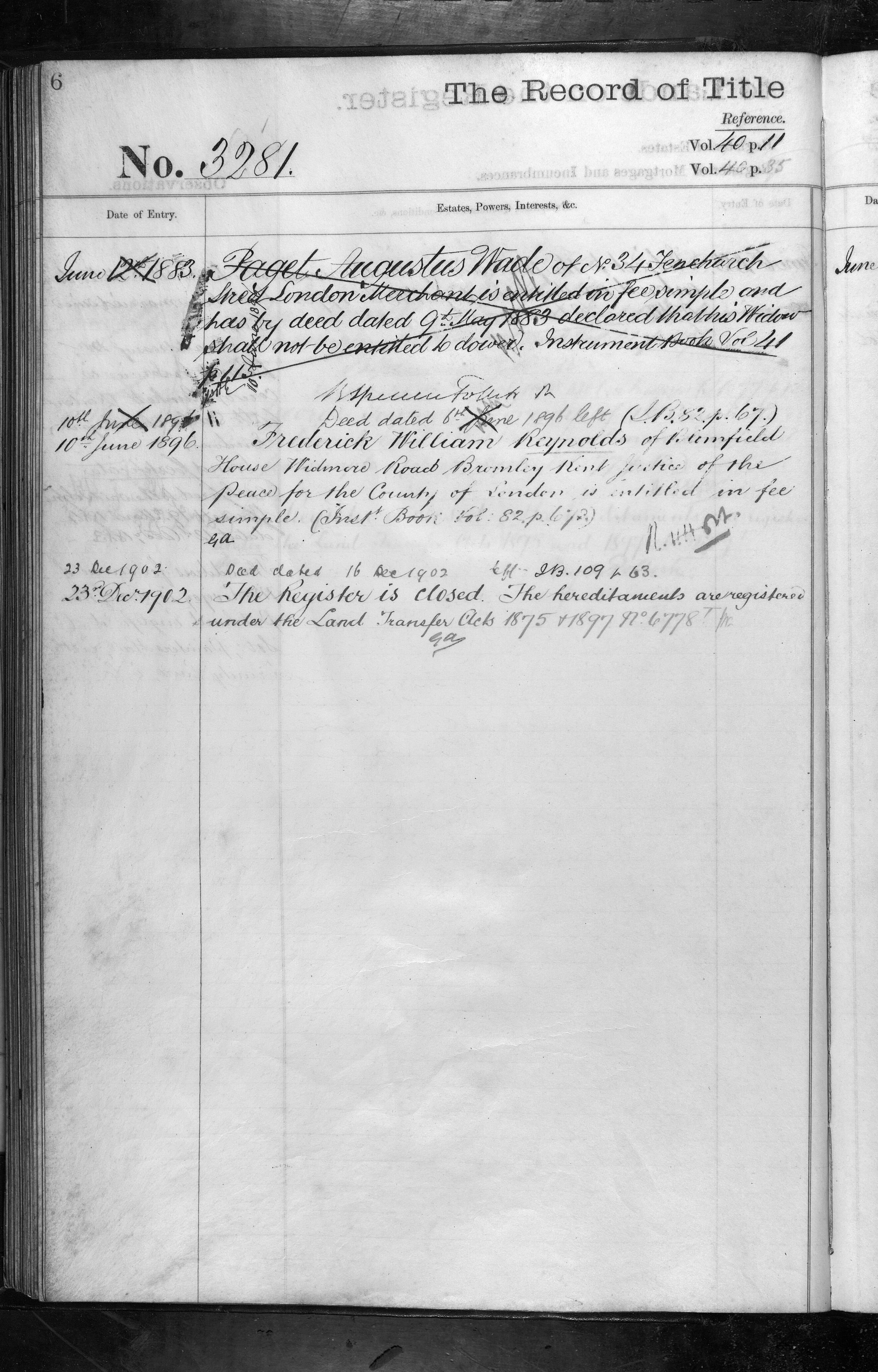 - Paget Augustus Wade, Frederick William Reynolds