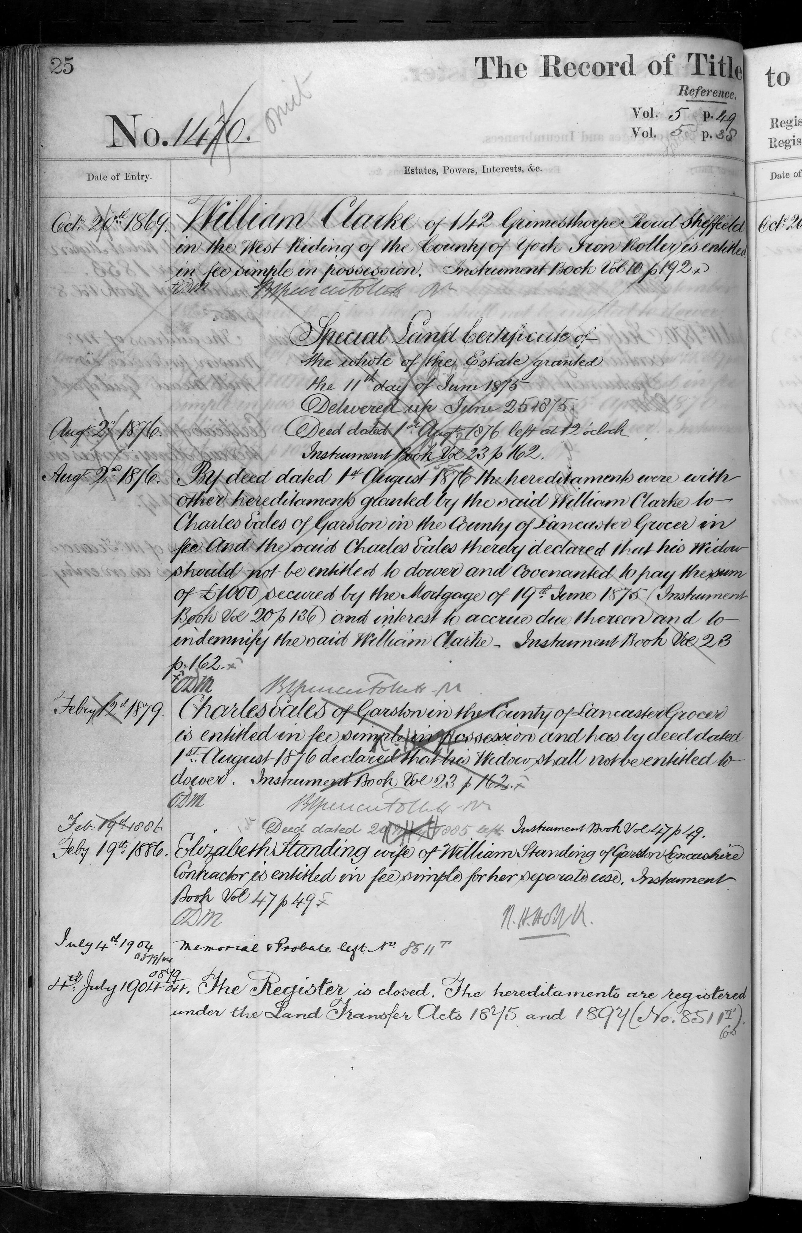- William Clarke, Charles Eales, Elizabeth Standing