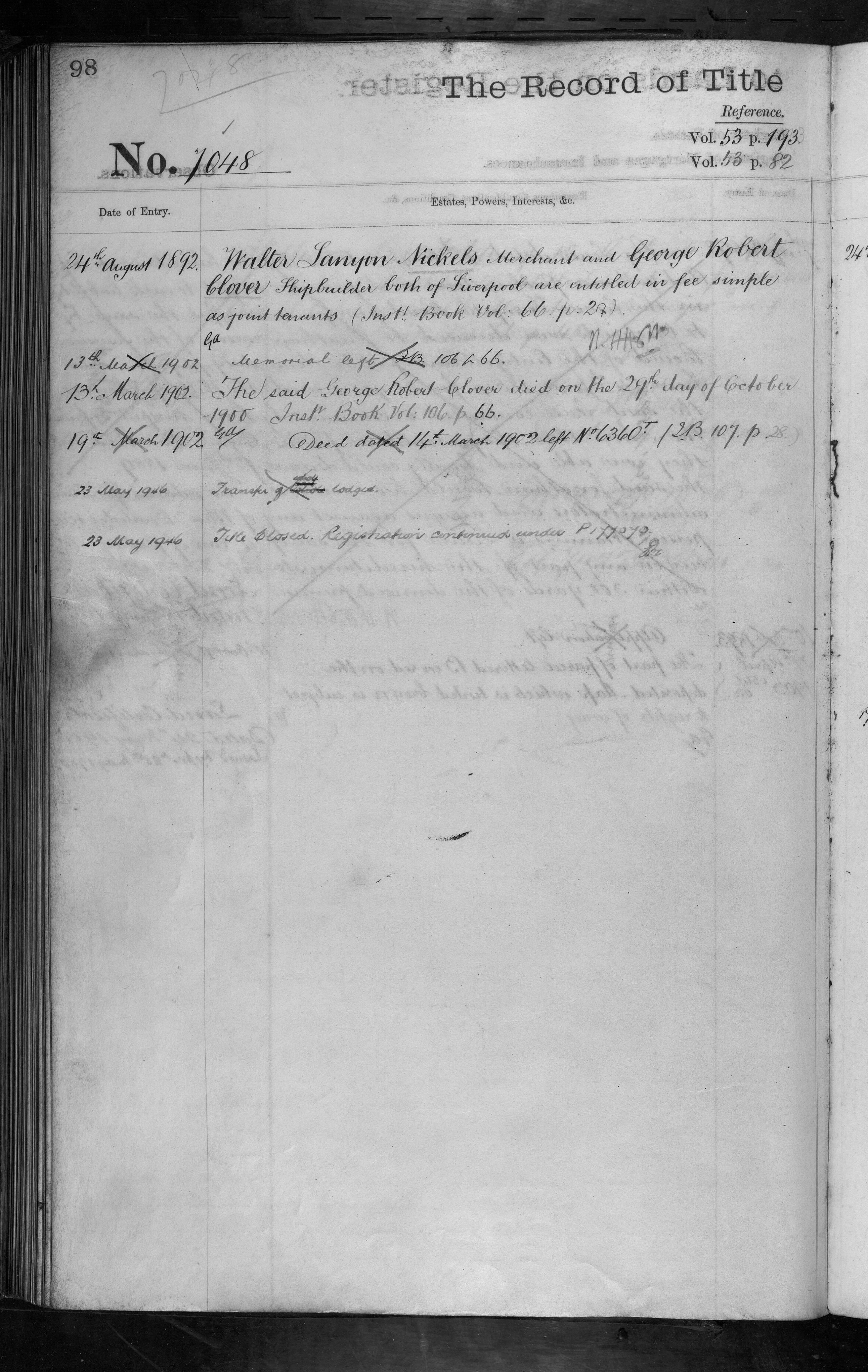 - Walter Lanyon Nickels, George Robert Clover