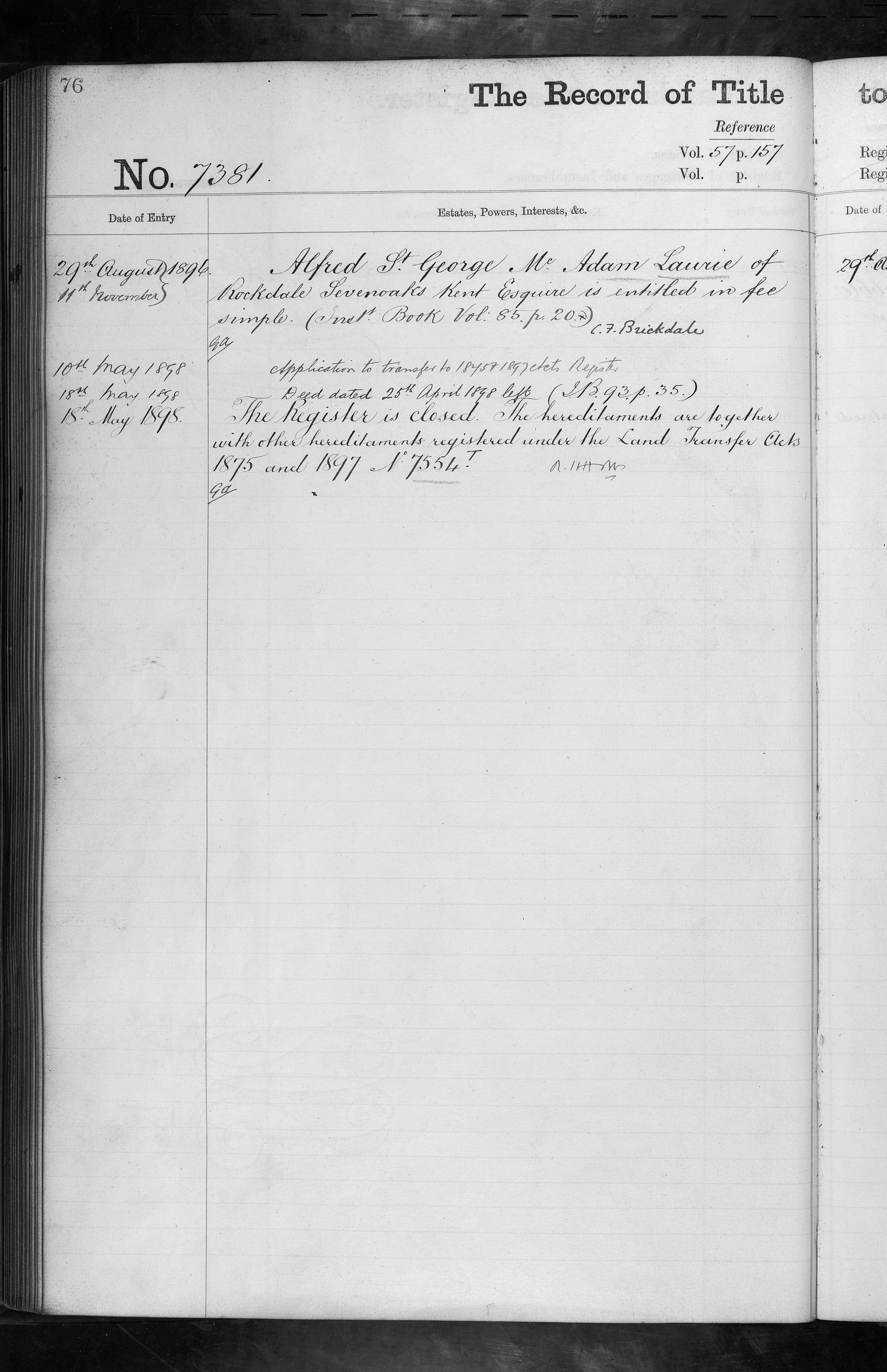 - Alfred St. George, McAdam Laurie