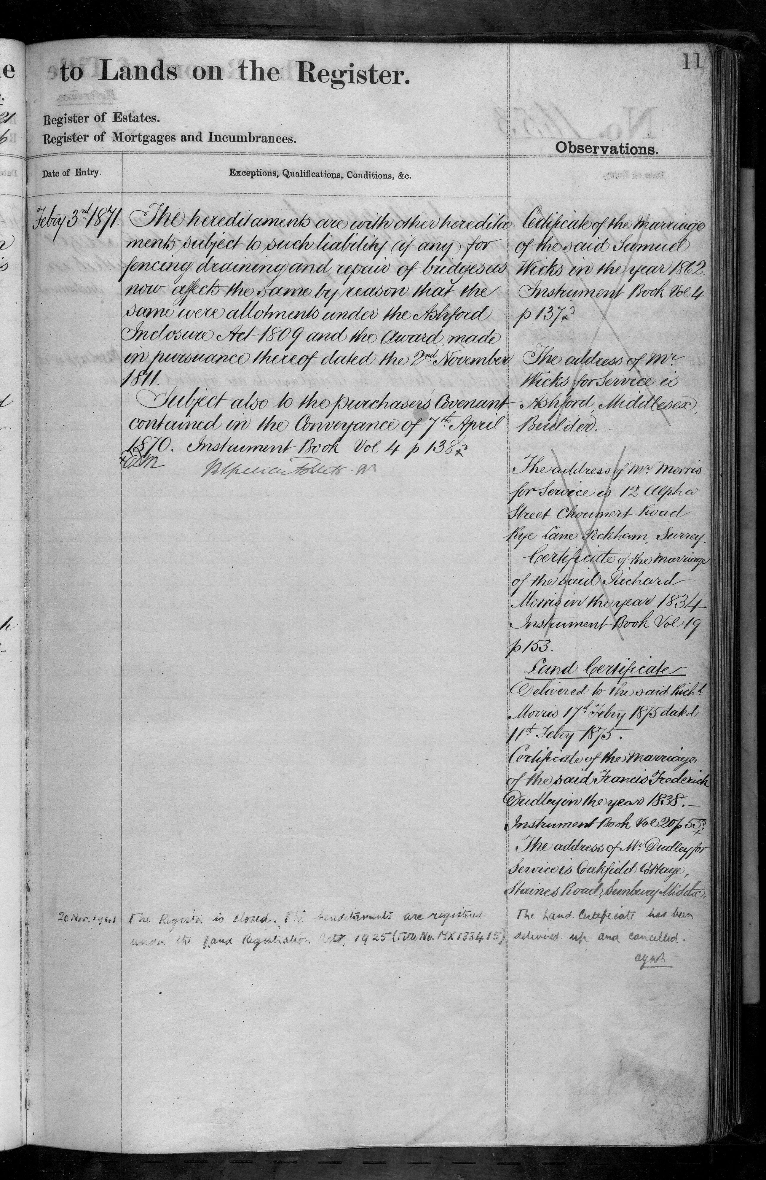 - Samuel Wicks, Richard Morris, Francis Frederick Dudley