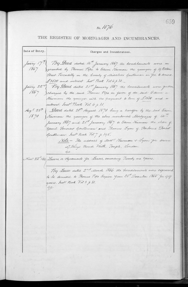 Register of MortgagesVolume 001_2, Page 659Book type:RegisterOwner names:UnknownCounty/ Parish:UnknownView record